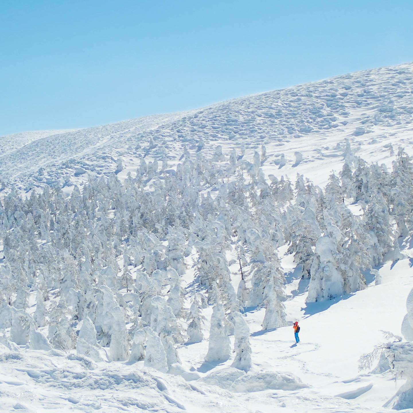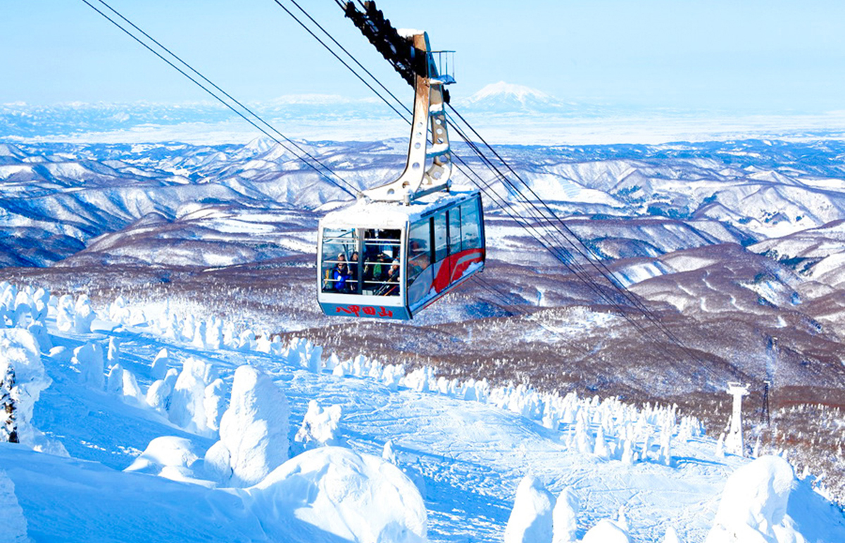 以田茂萢岳山頂的空中纜車站為基點,這裡有數條長達7公里的滑雪道,適合從初學者到高級滑雪者的各種需求。壯麗的樹冰景觀自不必說,還可以遠眺津輕、下北兩半島和北海道,這是八甲田山滑雪區獨特的魅力。